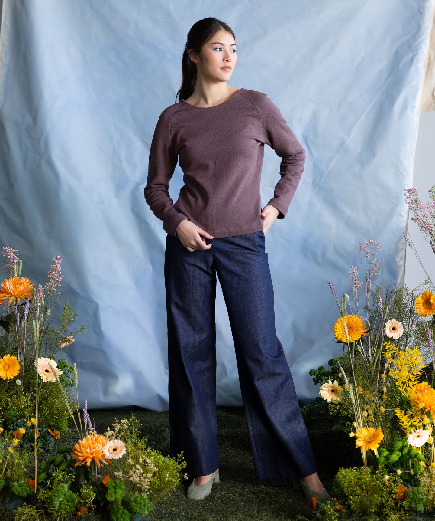 The Tango shirt is a versatile top you can wear in 2 ways: with the cleavage in the front or in the back. The shirt is made in a warm taupe sweat.