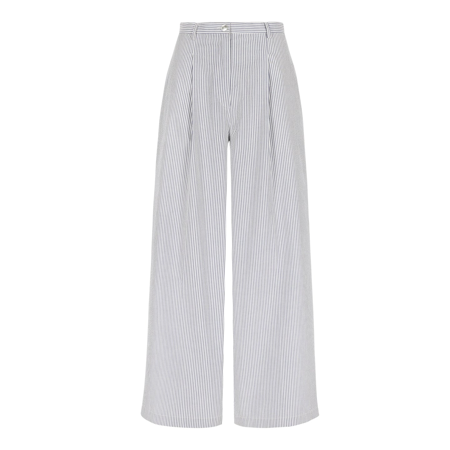 These Clio pants are designed with a wide leg and functional pockets for a sleek yet practical look. Made in seersucker, they offer both style and comfort for all-day wear. Perfect for any occasion, these pants are a must-have addition to your wardrobe. You can match the with the Candy blouse Blue stone or the Umber blouse Panna.